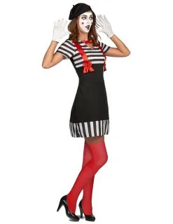 Zwart Met Wit Gestreept Mime Kostuum Voor Dames