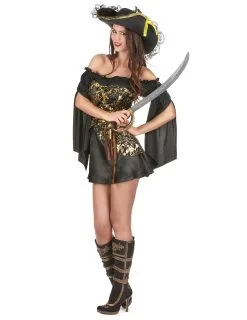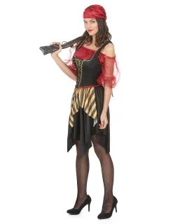Zwart Rood En Goudkleurig Piratenkostuum Voor Vrouwen