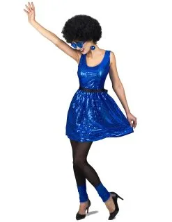 Blauw Glitter Disco Kostuum Met Strik Voor Vrouwen