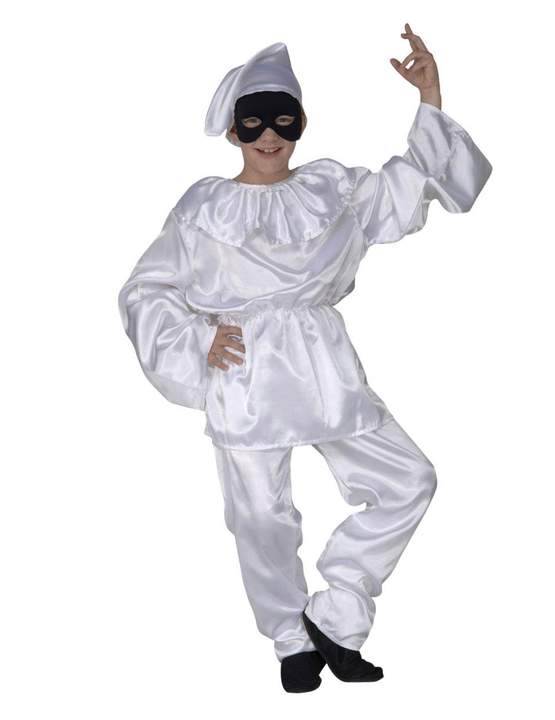 Deze witte Pierrot outfit voor kinderen bevat een overhemd, een broek en een muts (Masker en schoenen zijn niet inbegrepen).