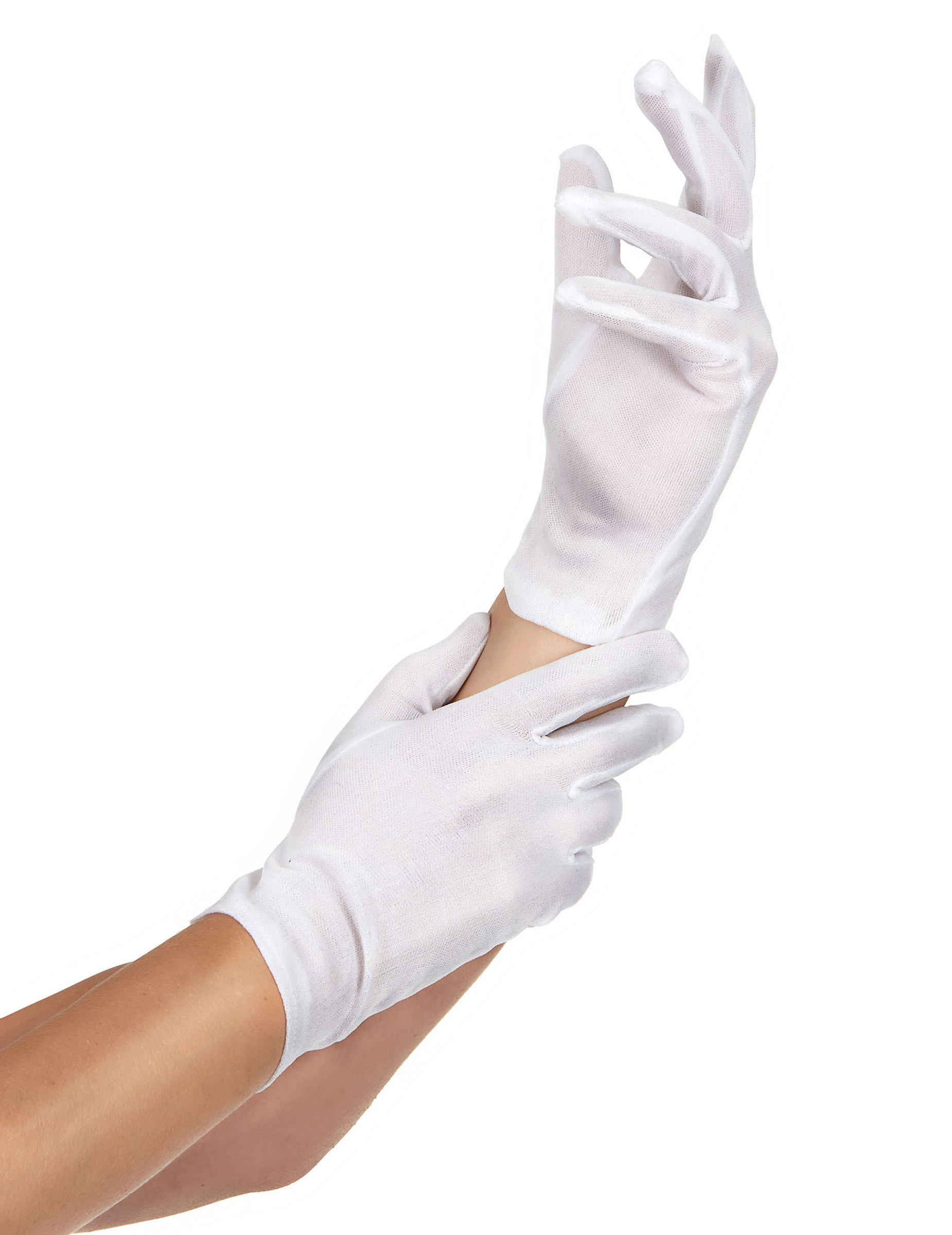 Deze korte witte handschoenen zijn gemaakt van dun stof en zijn bestemd voor volwassenen.