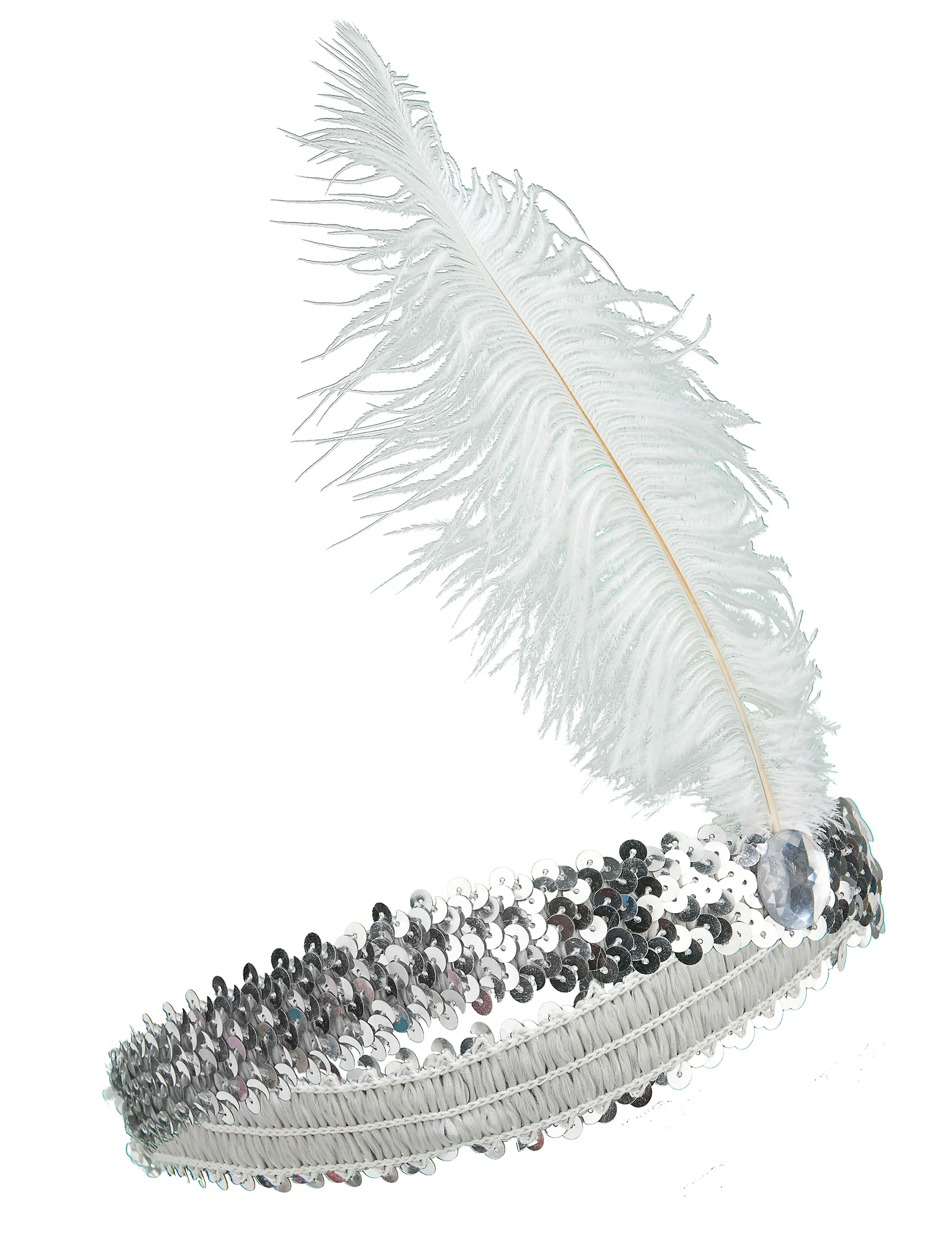 De hoofdband is elastisch en bedekt met lovertjes. Een veer en een nep edelsteen zijn ook aanwezig voor een prachtig effect.