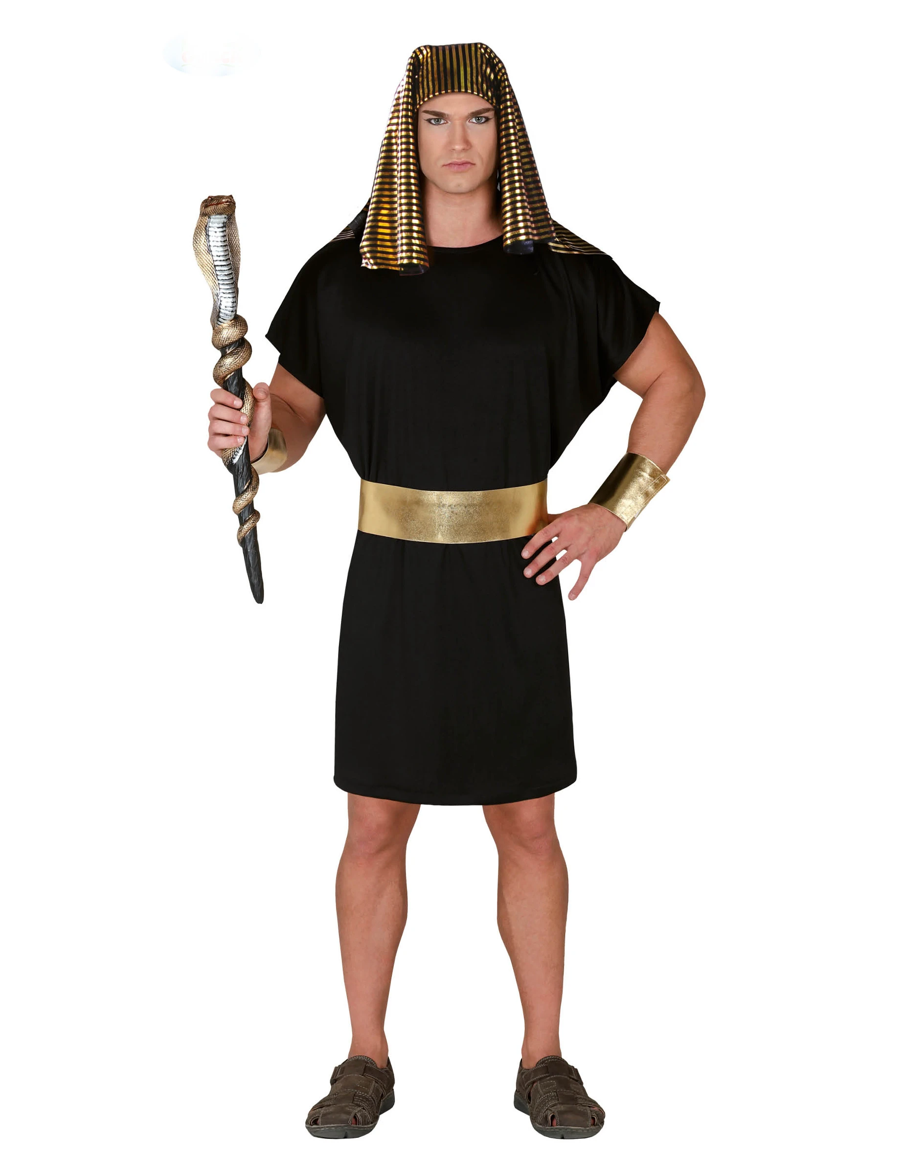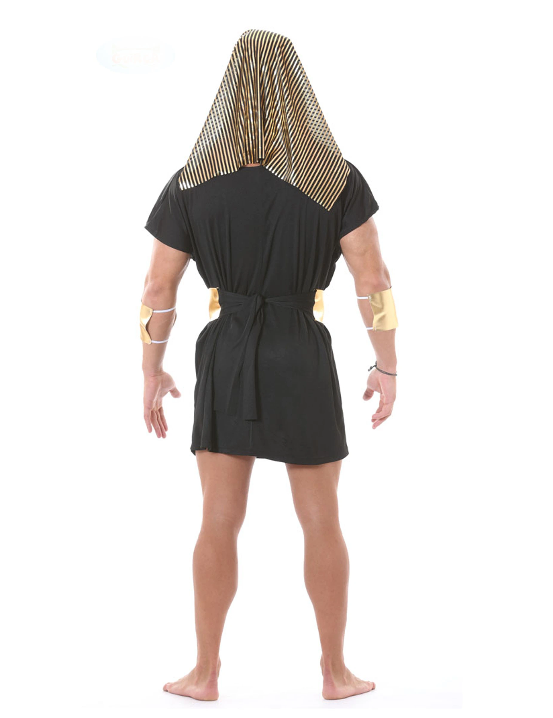 Dit farao kostuum voor mannen bestaat uit een tuniek, riem, polsbanden en een hoofdstuk (scepter en schoenen niet inbegrepen).